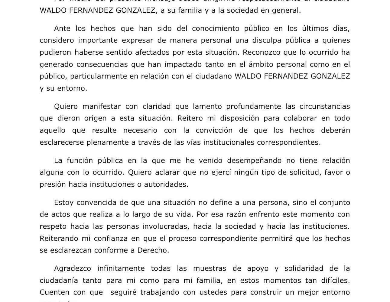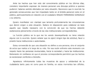 Karina Barrón ofrece disculpa pública al senador Waldo Fernández por acusaciones