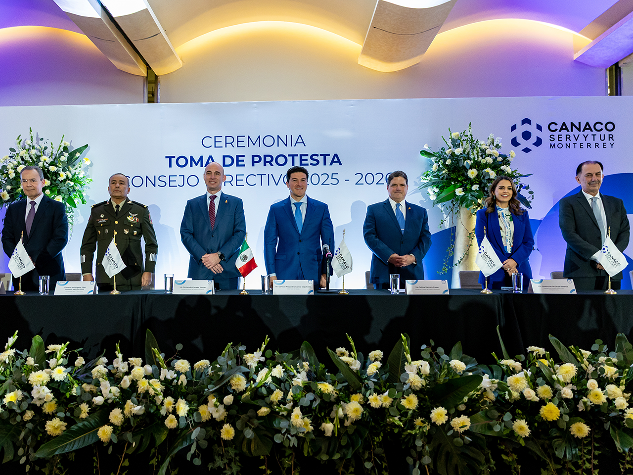 Monterrey, NL.- Al refrendar su compromiso con el sector empresarial, el Gobernador Samuel Alejandro García Sepúlveda encabezó la ceremonia de toma de protesta del nuevo presidente de la Cámara Nacional de Comercio, Servicios y Turismo de Monterrey (CANACO), Jaime Herrera Casso, así como del Consejo Directivo 2025-2026.