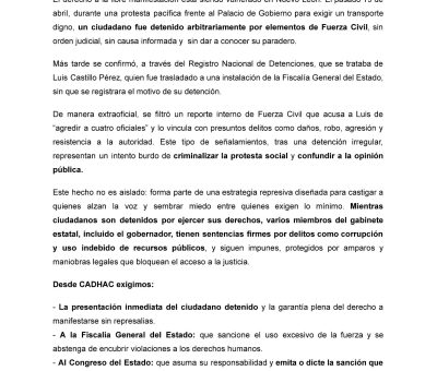 Leer másEl Comité de Derechos Humanos de Nuevo León (CADHAC) denunció la creciente vulneración del derecho a la libre manifestación en la región, tras la arbi