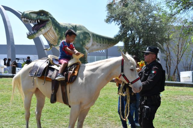 Ciudad Victoria, Tamaulipas.- En conmemoración al Día de la Niña y el Niño, personal de la Guardia Estatal participó en el evento organizado por el Museo de Historia Natural de Tamaulipas (TAMUX), en el cual, familias visitantes convivieron con elementos del agrupamiento montado, canino, así como las botargas oficiales: Coronel Justicia y Capitana Honradez.