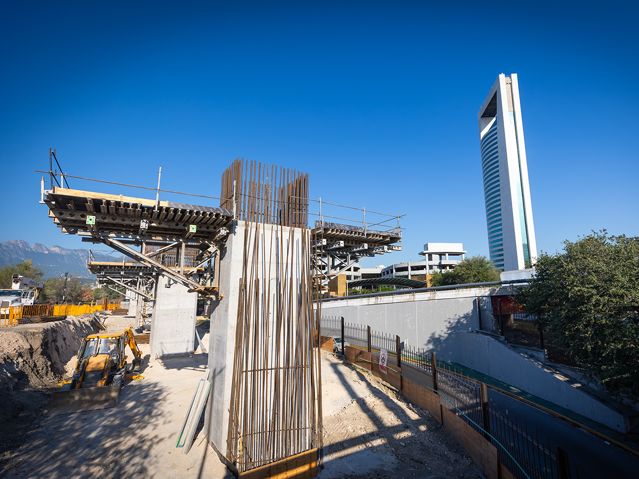 - Constata Samuel García el avance de los trabajos de este proyecto vial en Parque Fundidora, y verifica los trabajos de cimentación de la Estación Torre Administrativa.