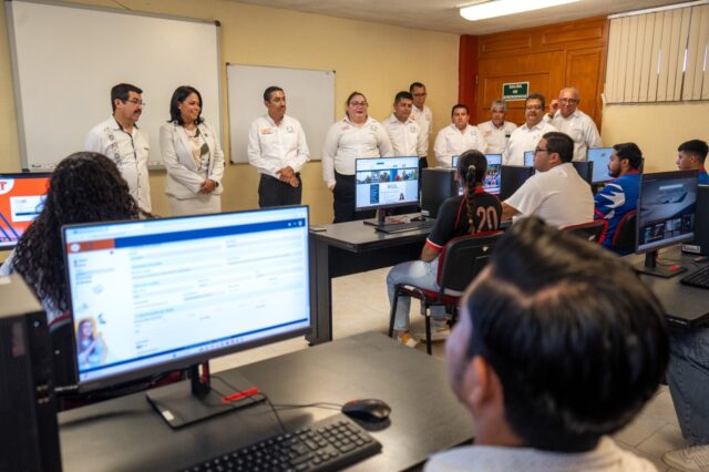 Más adelante, Dámaso Anaya encabezó la entrega simbólica de 30 equipos de cómputo, de los cuales 25 fueron asignados al Centro de Cómputo y 5 al Laboratorio de Idiomas.