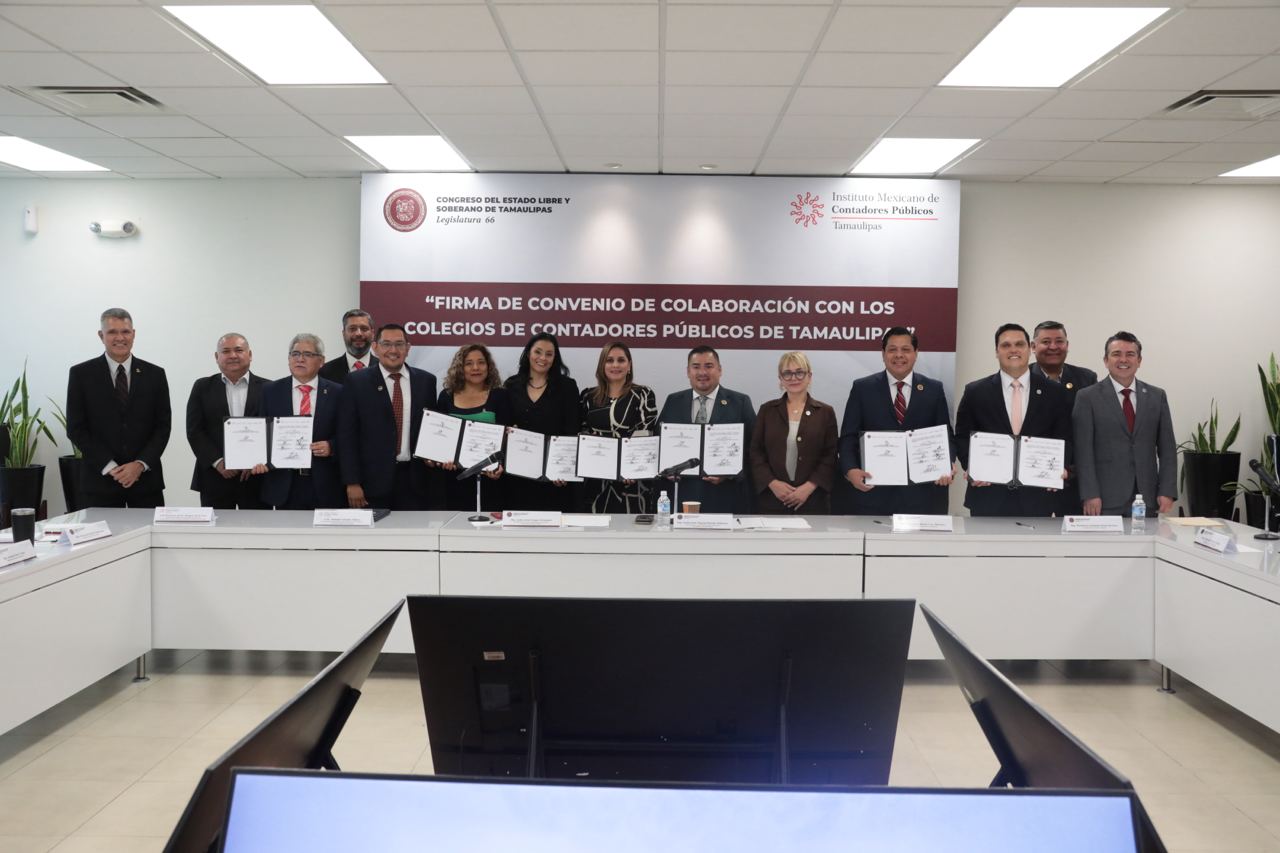 El Congreso del Estado de Tamaulipas celebró este martes la firma de un convenio de colaboración con los Colegios de Contadores Públicos de Tamaulipas, con el objetivo de fortalecer el trabajo técnico en materia presupuestal, fiscal y de rendición de cuentas.