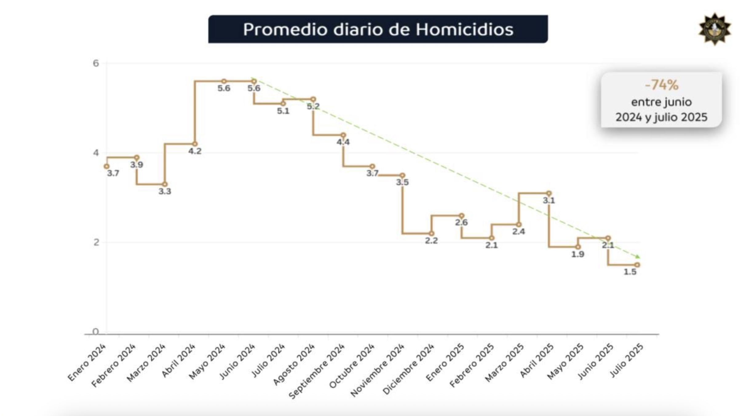 Monterrey, Nuevo León.- El trabajo conjunto de la Mesa de Seguridad para la Construcción de la Paz, integrada por Estado, Municipios y fuerzas armadas como la Defensa, Guardia Nacional y la Marina, permite a Nuevo León posicionar a la baja los indicadores delictivos, en donde destaca la reducción en un 74% en el promedio diario de homicidios dolosos, respecto a los meses de mayor incidencia del año pasado; así como una reducción del 82% en los feminicidios respecto al primer semestre del 2024.