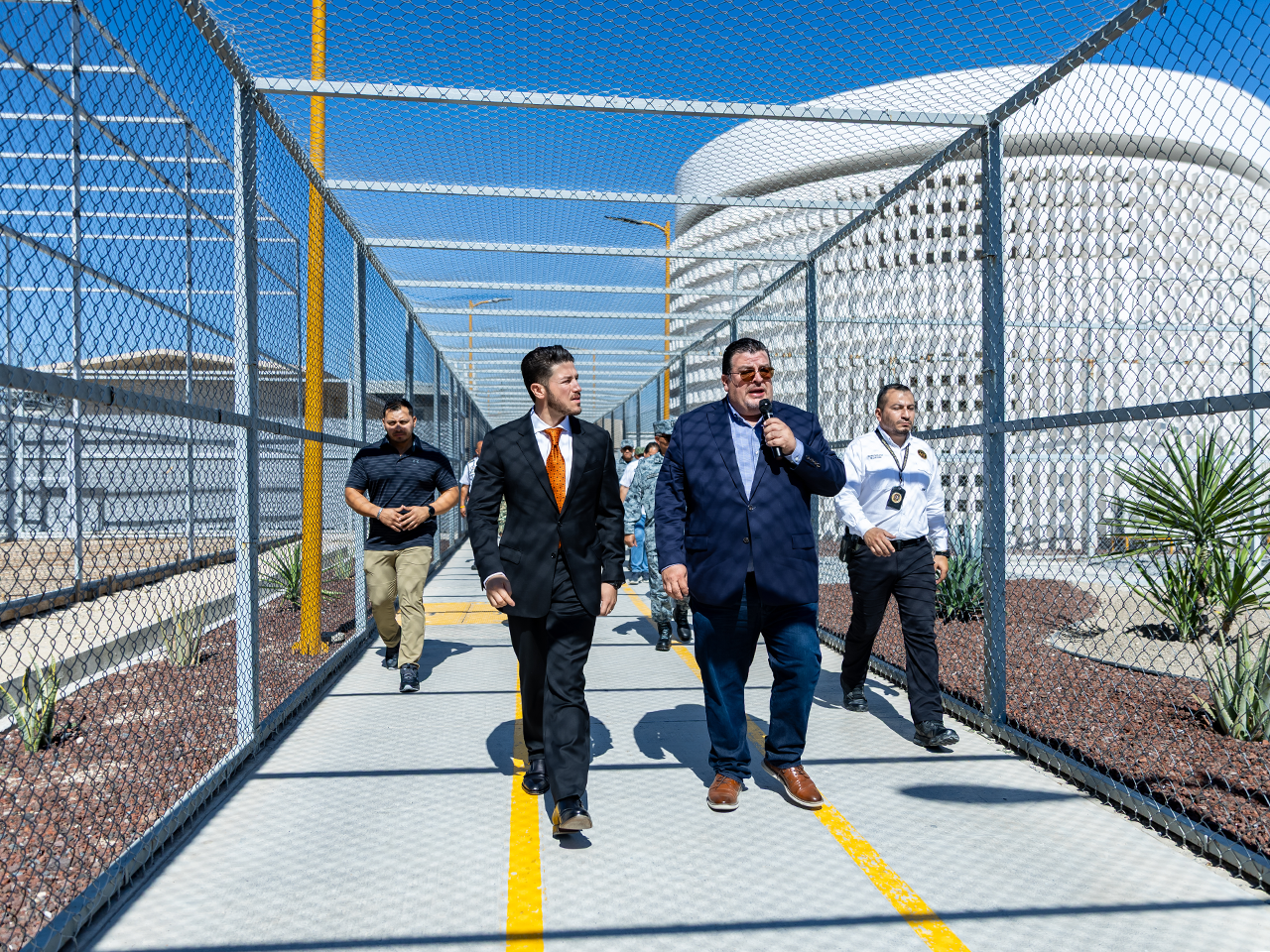 Tras encabezar la Mesa de Seguridad en el CERESO 2 Norte en Apodaca, el Mandatario estatal recorrió las instalaciones de este penal acompañado de los integrantes de la Mesa y de Asambleístas de la Conferencia Nacional del Sistema Penitenciario que sesionan en Nuevo León.