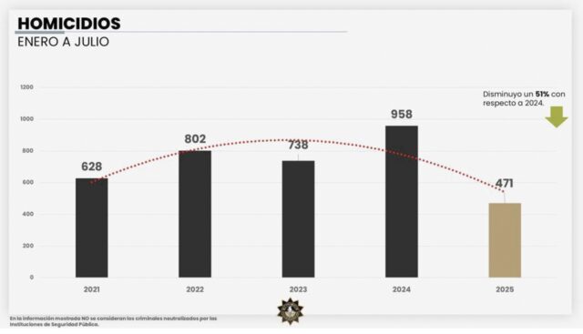 Con lo anterior, el 2025 se proyecta como el año de mayor contención en este crimen comparado con los últimos cinco años.