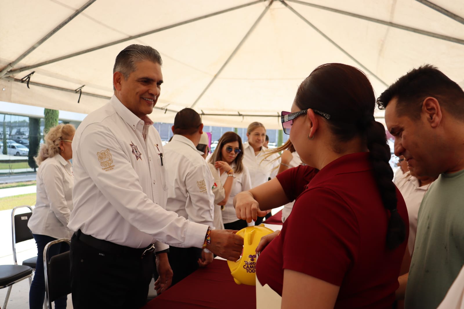Ciudad Victoria, Tamaulipas.- Siguiendo la política humanista e instrucción del gobernador, Américo Villarreal Anaya de contribuir a las causas sociales que benefician a la ciudadanía tamaulipeca, la Secretaría de Seguridad Pública de Tamaulipas (SSPT) se sumó a la colecta anual del Teletón, misma que fue inaugurada por su titular, Carlos Arturo Pancardo Escudero.