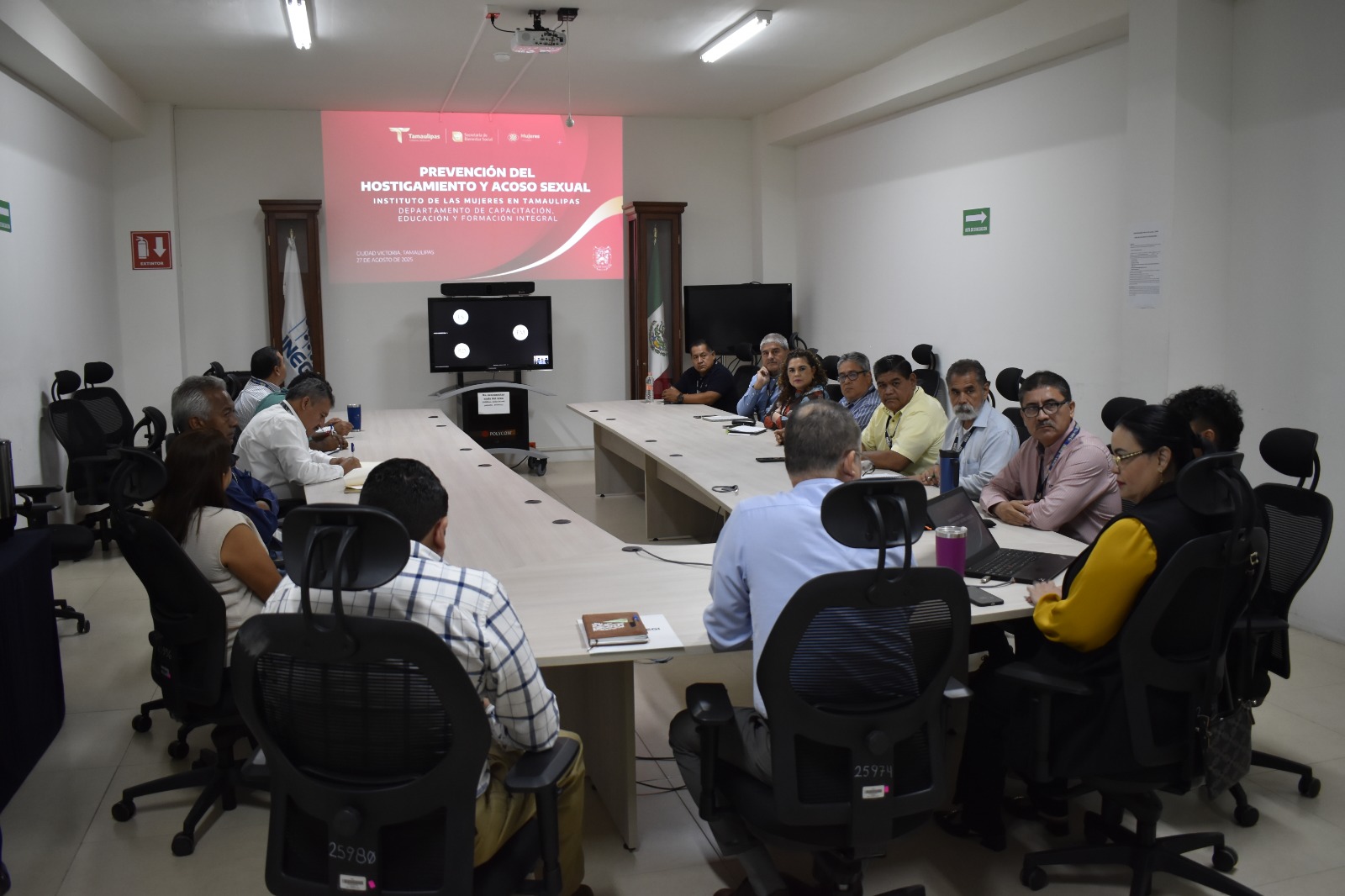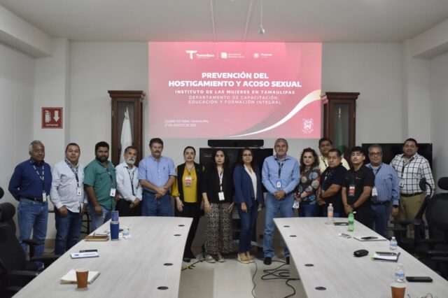 Ciudad Victoria, Tamaulipas.– Con el propósito de sensibilizar, capacitar y promover entornos laborales libres de violencia de género, el Instituto de las Mujeres en Tamaulipas (IMT) impartió el taller “Prevención del hostigamiento y acoso sexual”, dirigido a servidoras y servidores públicos en las oficinas del Instituto Nacional de Estadística y Geografía (INEGI).