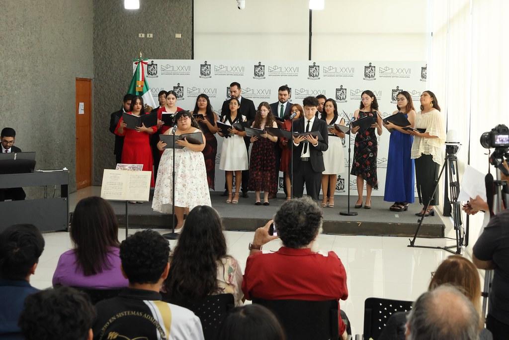 El concierto, que se realizó en el Salón Bicentenario del Congreso local, estuvo a cargo del Coro Sonus y el Taller de Ópera de la Facultad de Música de la Universidad Autónoma de Nuevo León, bajo la dirección de Graciela Mirna Marroquín Narváez.