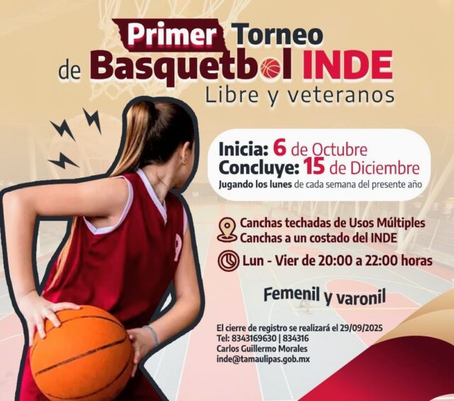 Invita INDE a participar en primer torneo de basquetbol “Gobernador Américo Villarreal Anaya”