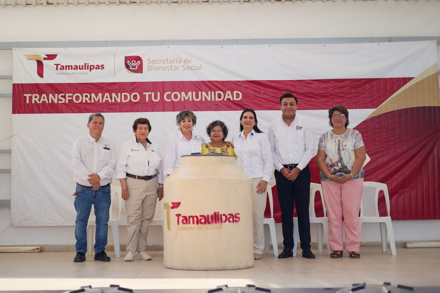 Más tarde, en el Centro de Bienestar y Paz del municipio de Tampico y contando con la presencia de la presidenta municipal de ese puerto Mónica Villarreal Anaya quien dio un mensaje de bienvenida, se hizo entrega de 76 tinacos que fueron gestionados ante la Secretaría de Recursos Hidráulicos para el Desarrollo Social.