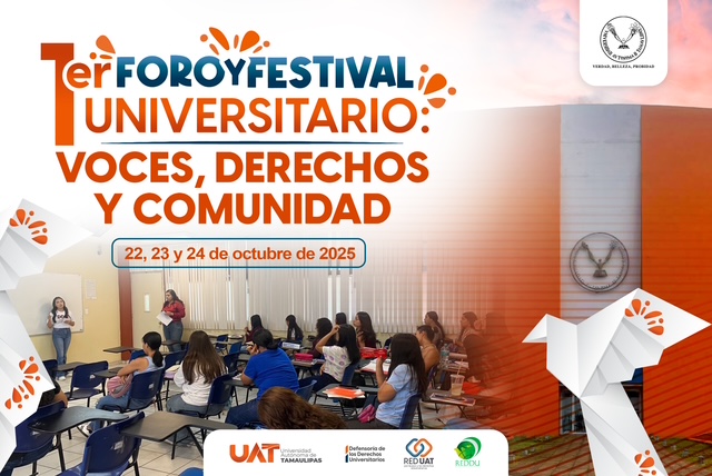 La Universidad Autónoma de Tamaulipas (UAT) será sede del Encuentro de la Red de Organismos Defensores de los Derechos Universitarios (REDDU), el cual se llevará a cabo del 22 al 24 de octubre. En este marco, se realizará también el Primer Foro y Festival Universitario: Voces, Derechos y Comunidad.