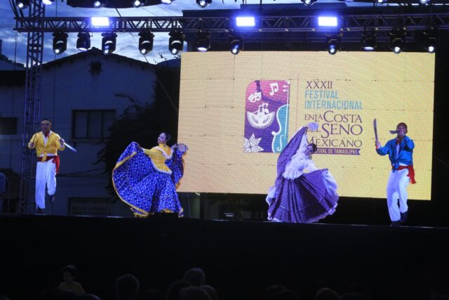 Ciudad Victoria, Tam.- Integrantes de la Orquesta Sinfónica de Alientos y del Ballet Folclórico de la Guardia Nacional participaron en el XXIII Festival Internacional en la Costa del Seno Mexicano con la finalidad de fortalecer los lazos de proximidad social con la ciudadanía, promover el patrimonio cultural nacional y reafirmar el compromiso institucional en Ciudad Victoria.