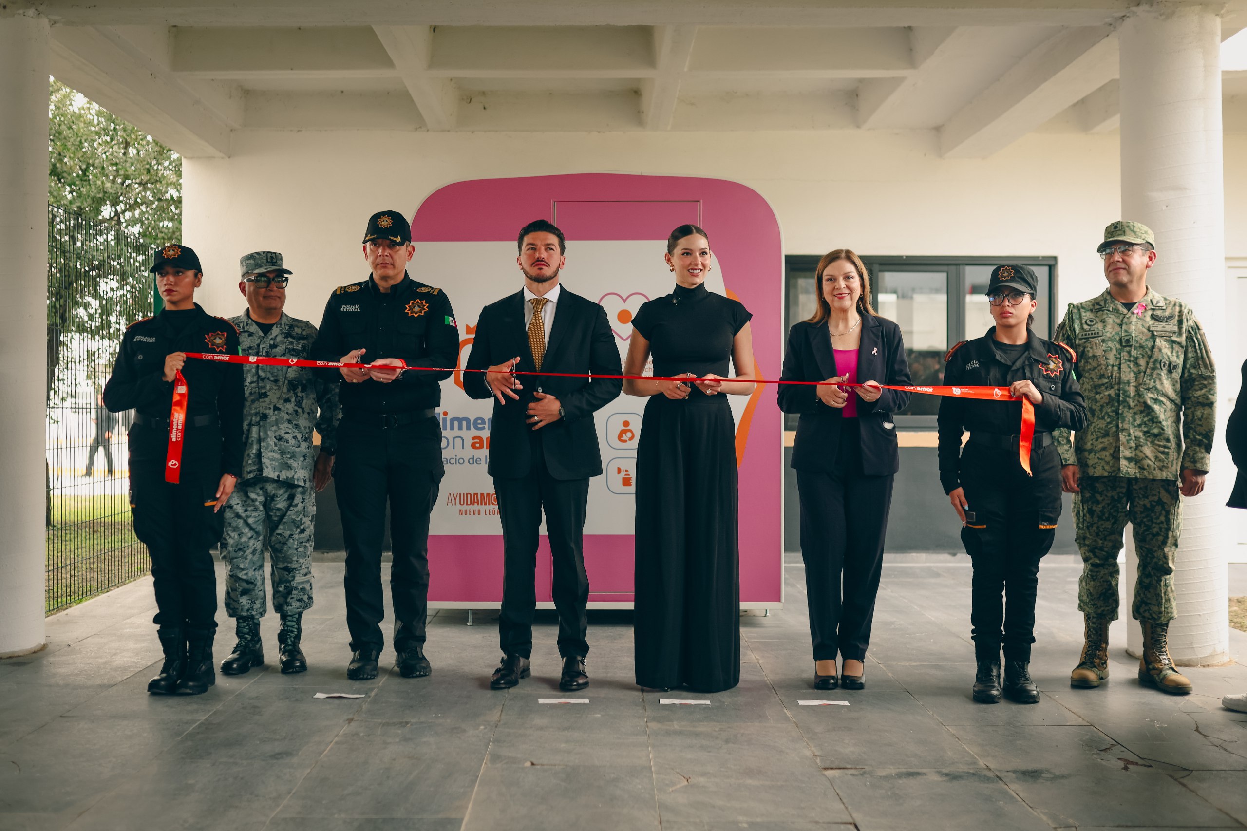 El corte de listón del lactario estuvo a cargo del Gobernador Samuel García, Mariana Rodríguez Cantú; el titular de la Nueva Fuerza Civil, Gerardo Escamilla; y la Subsecretaria de Prevención y Control de Enfermedades, María Mirthala Cavazos Parra.