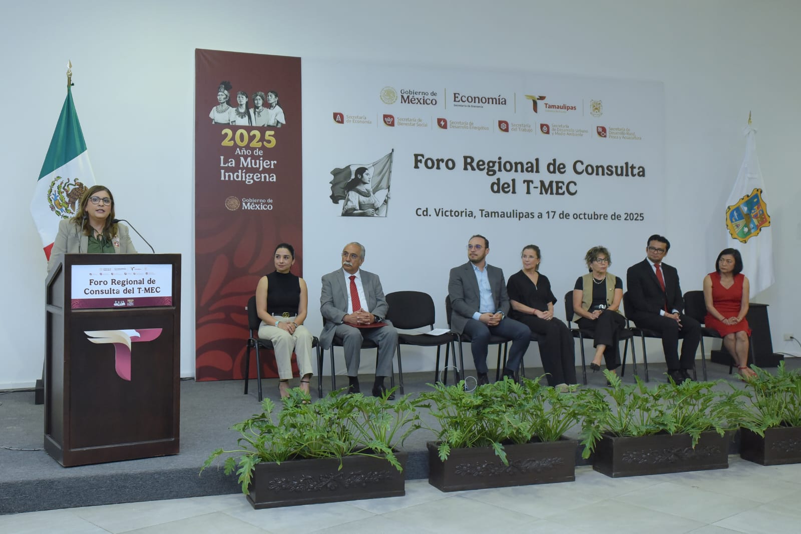 Ciudad Victoria, Tamaulipas.- En sintonía con la visión humanista y de desarrollo sostenible que impulsa la presidenta de México, Claudia Sheinbaum Pardo, y en línea con la estrategia del gobernador Américo Villarreal Anaya, el Gobierno de Tamaulipas, la Secretaría de Desarrollo Urbano y Medio Ambiente (SEDUMA), participó en el Foro Regional de Consulta del Tratado entre México, Estados Unidos y Canadá (T-MEC), realizado en el Centro Regional de Formación Docente e Investigación Educativa (CRETAM) de Ciudad Victoria.