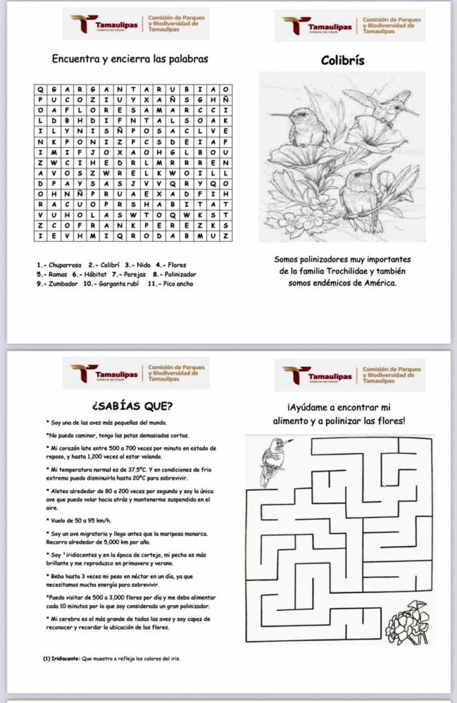 En la página de la Comisión podrán encontrar cuadernillos de cactáceas, del cocodrilo de pantano, colibrí, de los felinos que habitan en Tamaulipas, de la guacamaya verde, del jaguar, del lobo gris, del oso negro americano, entre otras especies más.