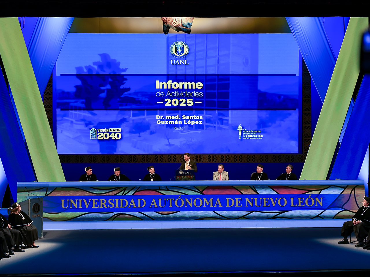 Asistieron a la Sesión Solemne del Honorable Consejo Universitario por el Informe de Actividades del Rector de la UANL, funcionarios federales, estatales y municipales; legisladores locales y federales, miembros del Consejo Universitario, Junta de Gobierno y estudiantes.