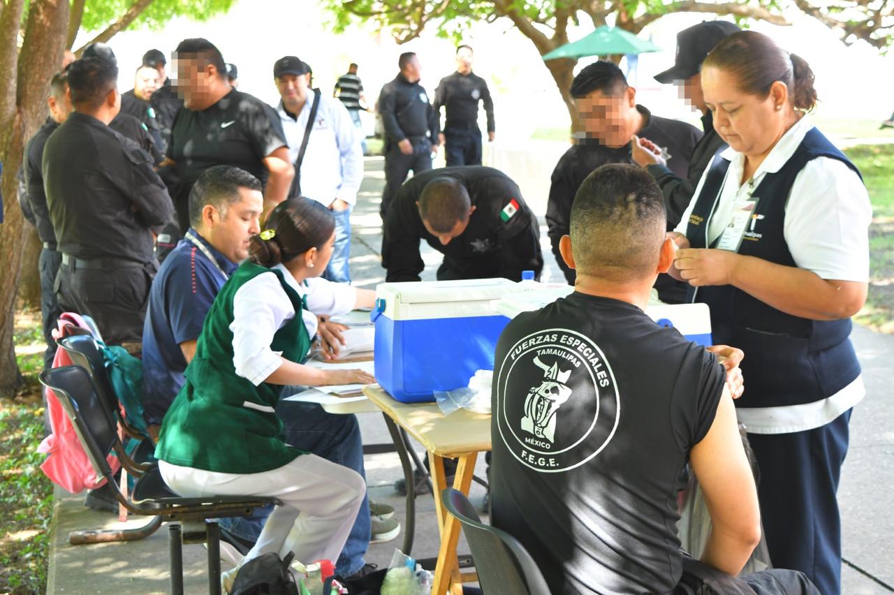 Ciudad Victoria, Tamaulipas.- Con el propósito de fortalecer las acciones de prevención y cuidado de la salud de su personal, la Secretaría de Seguridad Pública de Tamaulipas (SSPT) llevó a cabo una campaña de vacunación.