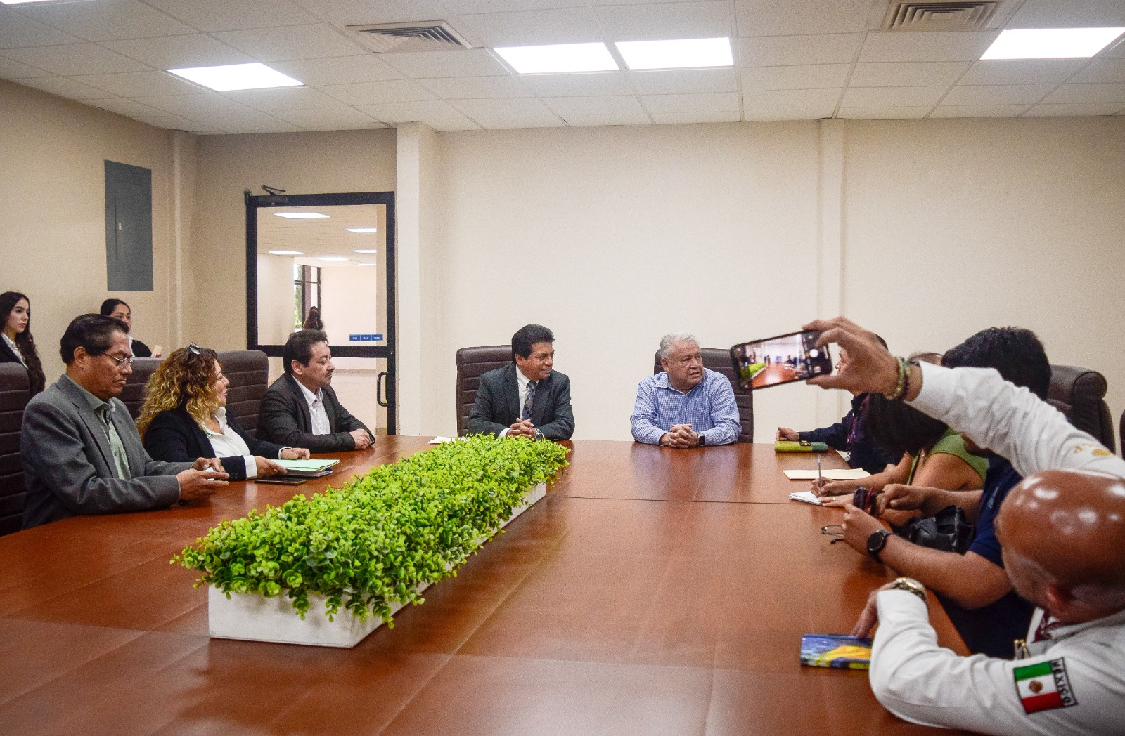 José Antonio Tovar Lara, rector de la universidad, informó que una comitiva de directivos de la ANAM, entre ellos José Sánchez Pérez, director general de Planeación Aduanera; Miguel Castellanos, director en la misma área; Miguel Dorantes, director de Modelos de Riesgo; María de la Luz Flores Tapia, subdirectora de Igualdad de Género; y el administrador de la Aduana local, teniente coronel Eric Omar Salinas Flores, asistieron a la institución para sostener una reunión de trabajo.