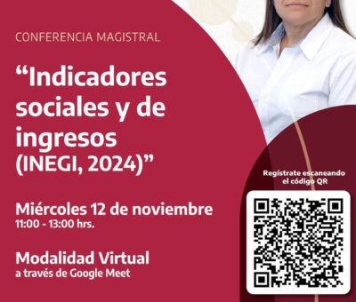 Leer másCiudad Victoria, Tamps.-La videoconferencia magistral “Indicadores Sociales y de Ingresos (INEGI, 2024)”, será dictada por la Dra. Claudia Vanessa Mal