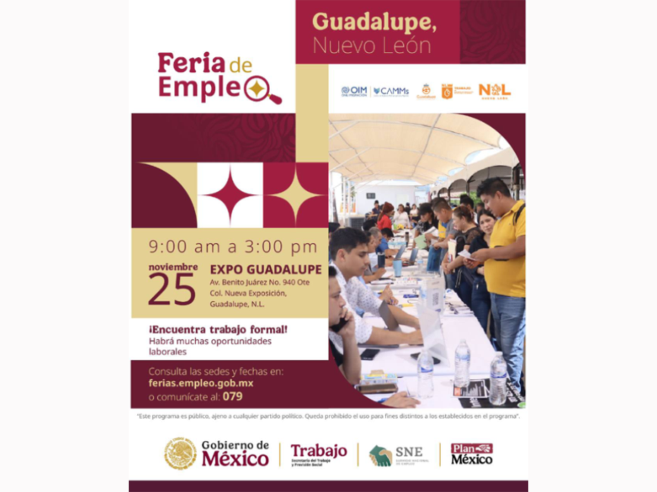 “Nos llena de satisfacción continuar con esta sinergia con el Gobierno Federal para llevar estas oportunidades de trabajo a todas las personas. En esta ocasión contamos con el apoyo del Gobierno Municipal de Guadalupe y de más de 12 organismos que ofrecen servicios y vinculación a programas sociales en el lugar”.