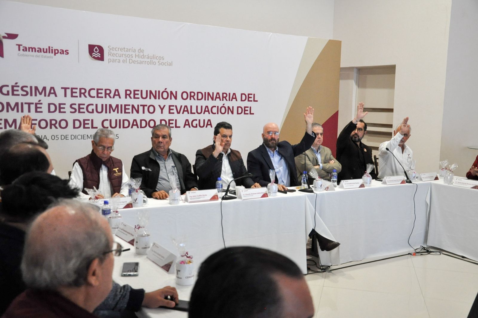 Ciudad Victoria, Tamaulipas.– La Secretaría de Recursos Hidráulicos para el Desarrollo Social dio a conocer la actualización del Semáforo del Cuidado del Agua en Tamaulipas, resultado de la Tercera Vigésima Reunión Ordinaria del Comité de Seguimiento y Evaluación, encabezada por el secretario Raúl Quiroga Álvarez y el presidente municipal de Ciudad Victoria, Eduardo Gattás Báez.