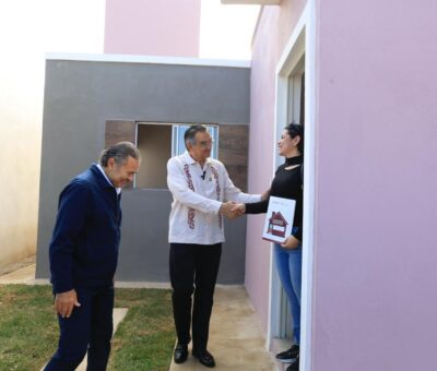 El director general del Instituto, Octavio Romero Oropeza, encabezó la entrega de 118 inmuebles en el fraccionamiento Todos por Tamaulipas, en Ciu