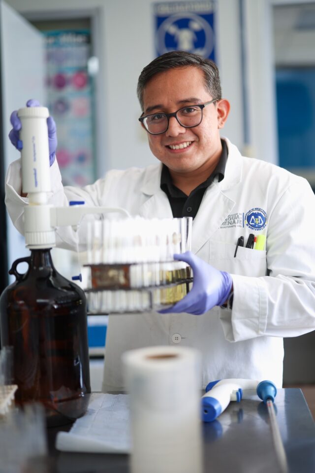 El Laboratorio de Calidad de Aguas, coordinado por Pablo Tamez Guerra, dispone de infraestructura especializada, equipamiento de alta tecnología y personal certificado, lo que permite evaluar parámetros físicos, químicos y microbiológicos del agua para uso y consumo humano, así como del agua residual y de los residuos asociados a los procesos de tratamiento.