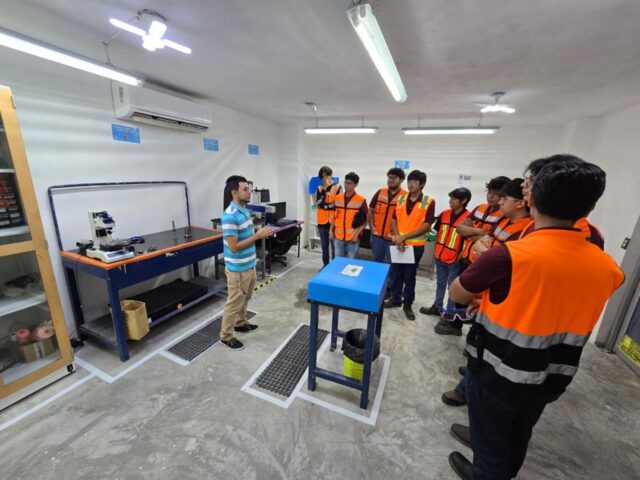 Durante el recorrido por sus intalaciones, los estudiantes recibieron una exposición introductoria sobre la historia, el giro y la proyección de la empresa. Posteriormente, conocieron de primera mano los procesos de manufactura destinados a clientes de las industrias Surface Mount Technology (SMT), tecnología crucial en la fabricación de componentes electrónicos modernos, y la aeroespacial.