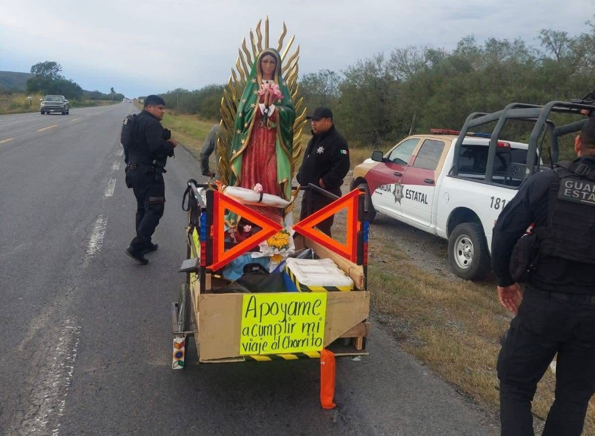 No hay prisa ni atajos. Solo el pedaleo constante, el cansancio que se acumula en el cuerpo y una promesa que debe cumplirse. Así avanza un peregrino originario de Reynosa que recorre kilómetros de carretera rumbo a El Chorrito, municipio de Hidalgo, Tamaulipas, llevando consigo una imagen de la Virgen de Guadalupe sobre una bicicleta tricarga.
