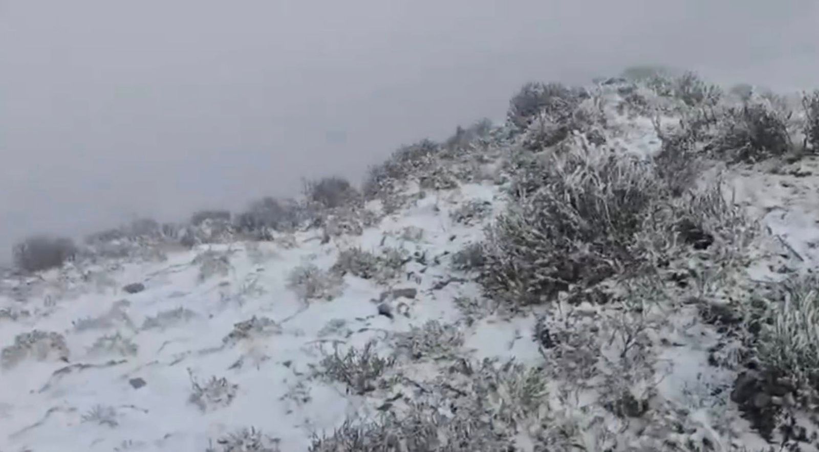 La primera nevada de la temporada se registró en los municipios de Galeana, Santiago, Iturbide y Bustamante, tras el ingreso de un frente frío a Nuevo León.
