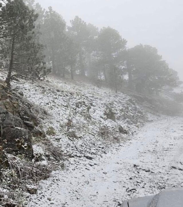 El fenómeno meteorológico provocó que las zonas montañosas del estado amanecieran este domingo cubiertas de blanco. De acuerdo con la Dirección de Protección Civil, la nevada inició la noche del sábado y se intensificó durante la madrugada del domingo.