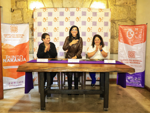 Monterrey, Nuevo León.- Para engrandecer la red de ayuda a las mujeres en todos los ámbitos de la vida, el Instituto Estatal de las Mujeres instaló este miércoles el primer Punto Naranja en el Barrio Antiguo de Monterrey.