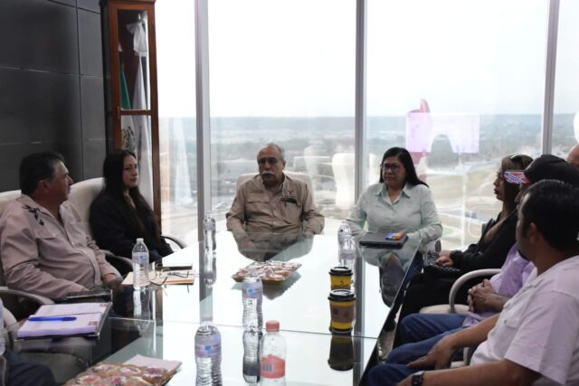 En la reunión participaron la directora de Fomento Forestal, Celene Ramírez García; Carlos Alberto López Reyes, encargado de la Dirección de Desarrollo Rural y PYMES; Yadira Méndez Delgado, responsable del tema de información general ante el SAT; y Roberto Garza Cipriano, quien presentó alternativas para el uso productivo de los esquilmos de plantas y maguey.