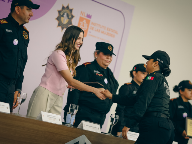 Durante el evento, reconoció públicamente a la comandante Rosa Nelly Ibarra Tovar, líder del grupo operativo Monterrey zona sur, quien cuenta con más de 14 años de servicio y actualmente coordina a más de 500 elementos.