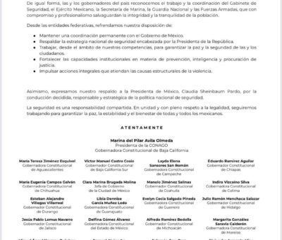 Leer másLa Conferencia Nacional de Gobernadoras y Gobernadores (CONAGO) emitió un pronunciamiento público en el que reconoce las acciones de la Secretaría de