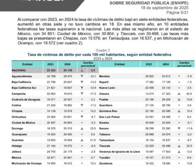 Leer másEncuesta del INEGI coloca a la entidad entre los siete estados con la tasa más baja de incidencia delictiva. De acuerdo con la Encuesta Nacional
